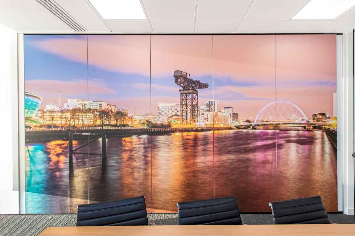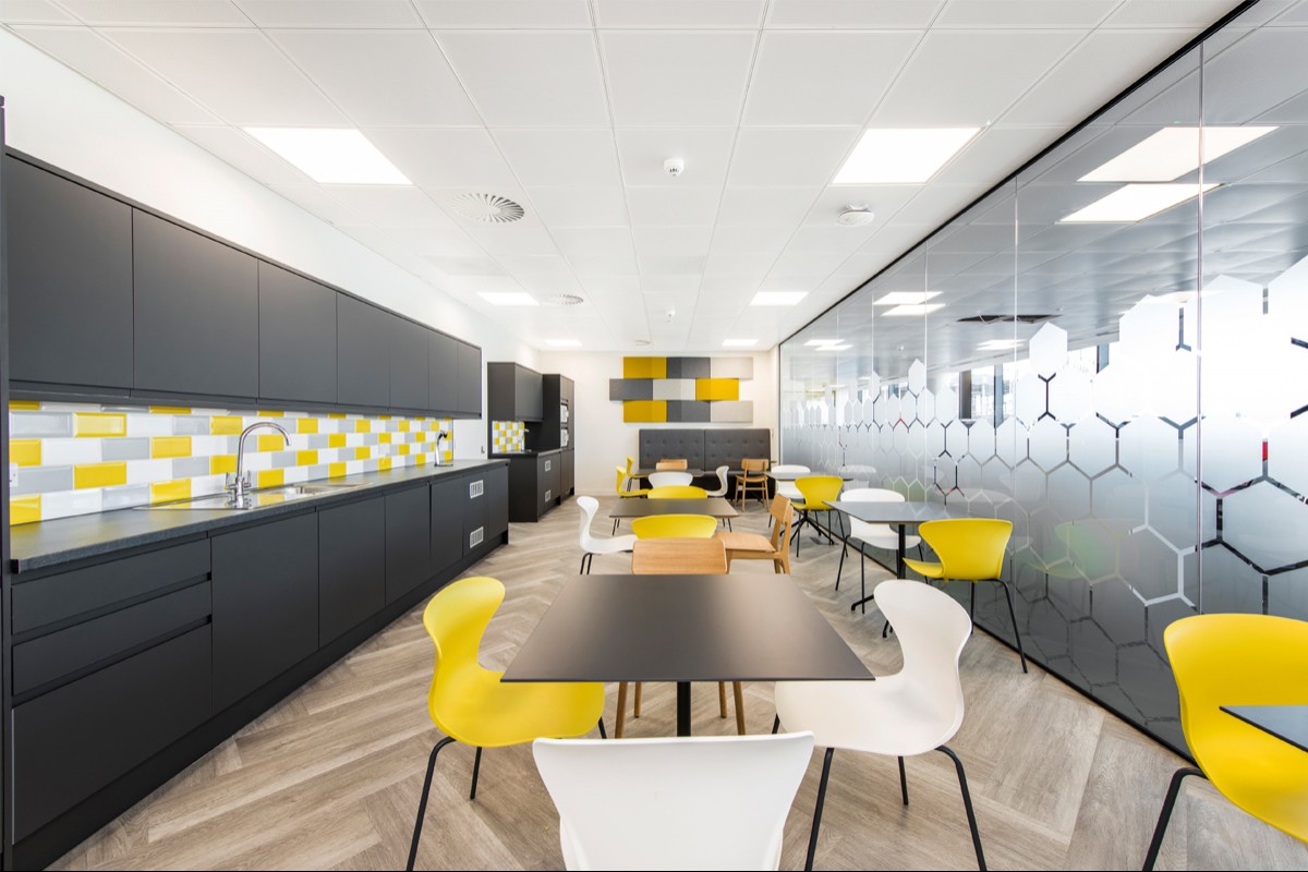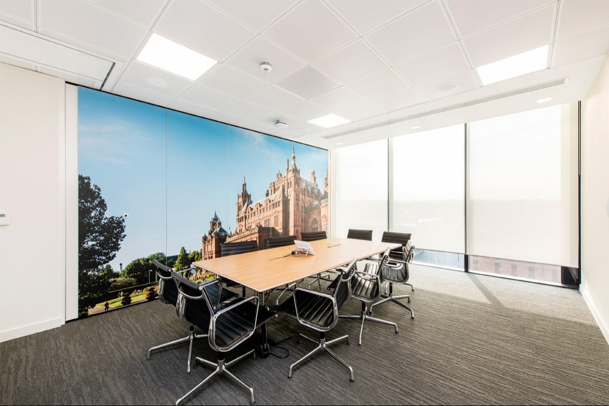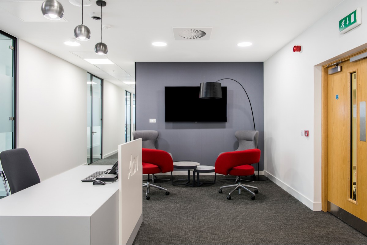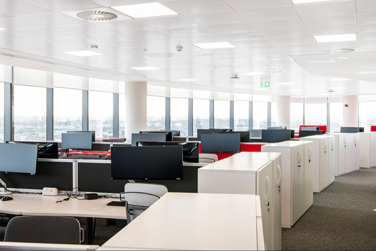 A full strip-out was required around the central core to make way for the client’s new meeting rooms, as well as new carpets, two new kitchens and two sliding folding walls. From an M&E persepctive, we were to strip out all the existing and increase capacity to support the desk & meeting room layout, replace some existing fan coil units in key areas, and a new condenser installed on the roof to support the cooling system in the newly formed comms room.
